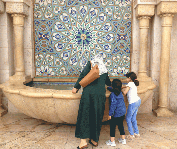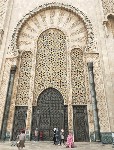 With intricate tile-work in pale blue, ivory and sea green, and its grand horseshoe arches, marble columns and fountains, the structure of the Hassan II Mosque is an exquisite blend of traditional and modern aesthetic sensibilities. I learned that part of the mosque’s floor is made of glass and the worshippers kneel directly over the sea. But this feature is now for royal use and off-limits to visitors, and so is the sliding roof of the mosque which opens occasionally. I was told by my friend Zubeida Mustafa that, when she had visited Morocco to receive the Global Media Award for Excellence in 2004, the roof of the mosque was opened for the delegation and ‘you get an exhilarating sense of the vast space opening up.’
