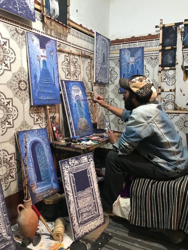 We got up at the break of dawn on the echo of the azaan. From the balcony, the city appeared peaceful and quiet, with its many shades of blue gleaming in the golden morning rays. After the sumptuous breakfast at the terrace of the guest house, we set out to explore the medina. The main street had small shops on both sides, full of exquisite handicrafts — woollen, leather, wood and ceramics, and paintings by local artists.