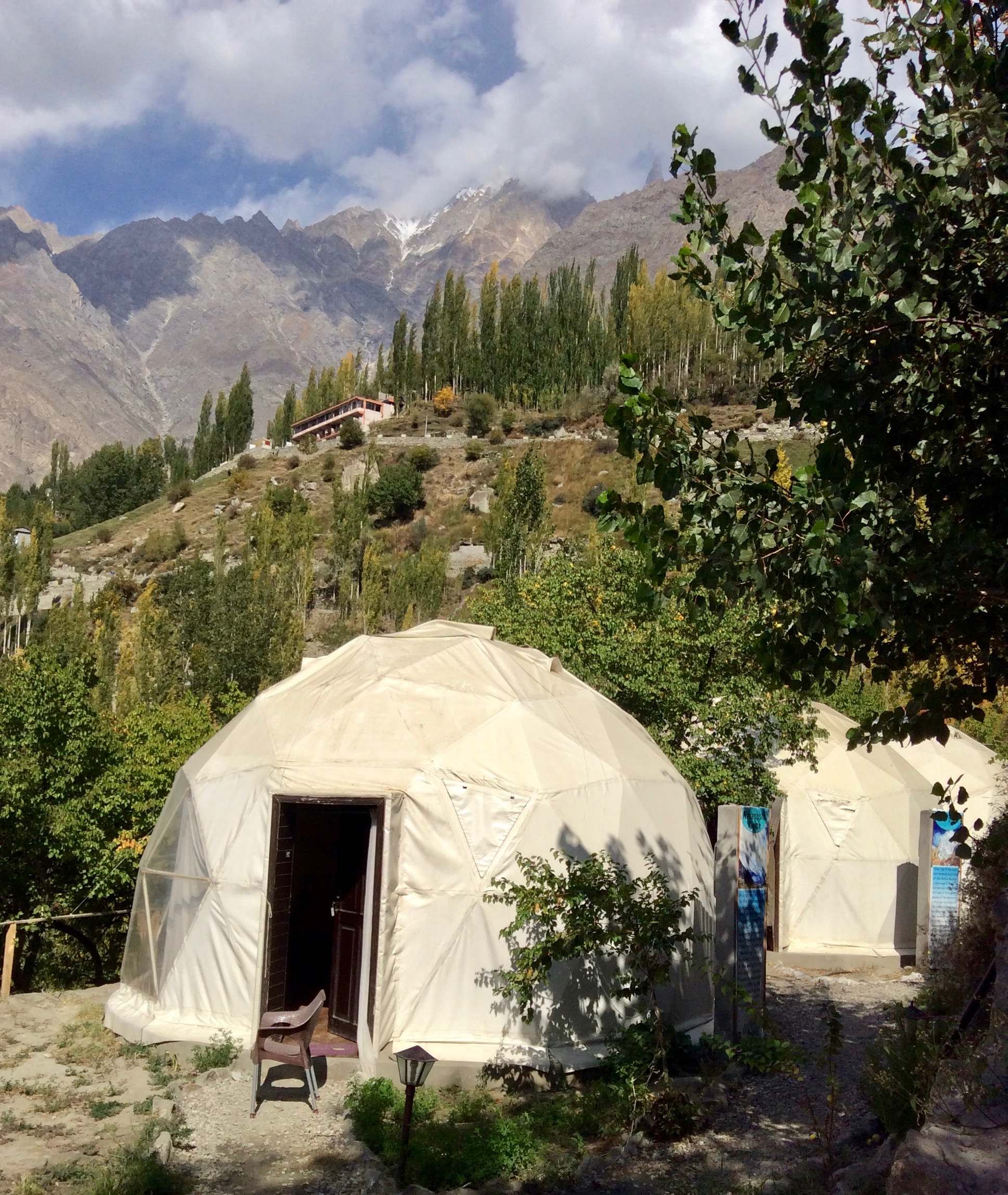 The resort we stayed in central Hunza was a dome-and-breakfast facility located in a picturesque village called Mominabad, on a terraced site overlooking the valley. Established by an investor from Punjab in 2018, the Hunza Glamping Resort is managed by a small team of local young men and undergrad students who were back home in the valley due to Covid-19 and had taken up temporary jobs. Just off the Highway, the resort is accessed by a descending walkway that goes through a couple of terraced fields owned and tilled by the villagers. The 360-angle view of the valley and the young team’s hospitality and friendly attitude made me overlook the resort’s flaws—difficult approach and lack of professional management.